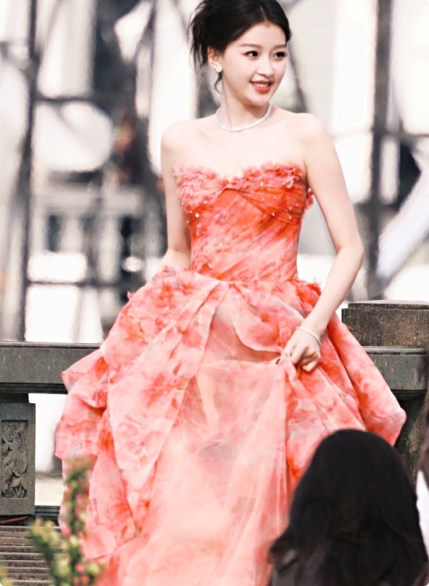 关键孙怡自带一种温柔优雅的气质,桃粉色的公主裙,在她的演绎下,好像真的有桃子的香气,叫人欲罢不能。